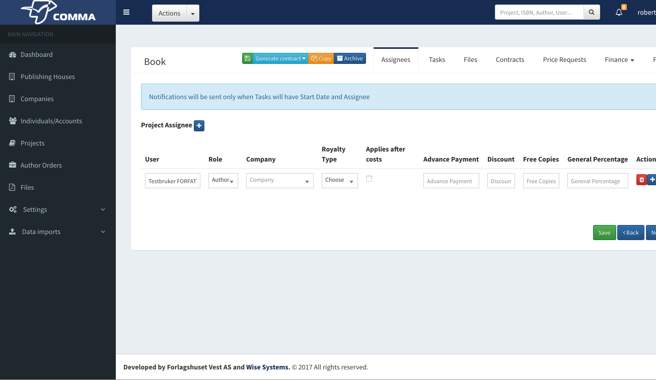 COMMA ist das Ergebnis einer Zusammenarbeit zwischen einem norwegischen Verlag und einem rumänischen Softwareentwicklungsunternehmen. Um sicherzustellen, dass unser Produkt eine verlässliche Lösung für Verlage ist, haben wir die Anwendung intern entwickelt und dafür gesorgt, dass die Bedürfnisse eines Verlags es so gut wie möglich bedient werden.